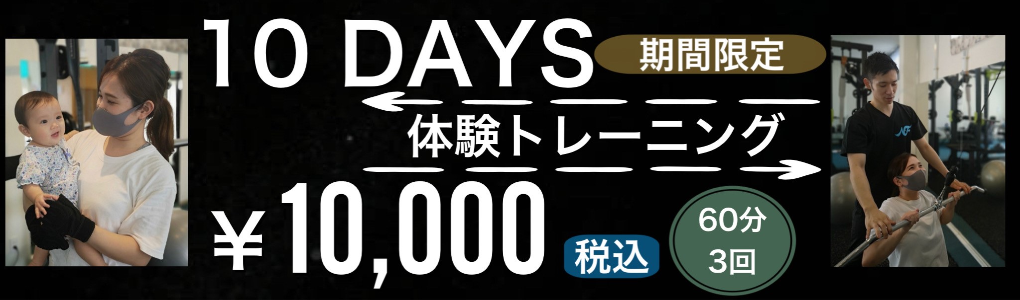 まずはお試しでやってみたい方へ!3回体験キャンペーンが税込みで10000円です。10日間で3回のトレーニングを受けていただけます。入会するか決めていなくて、何回か体験してみてから決めたい方におすすめです。ご予約は予約ページより「初回体験」でご予約いただくか、お電話、LINEのメッセージなどでお問い合わせください。