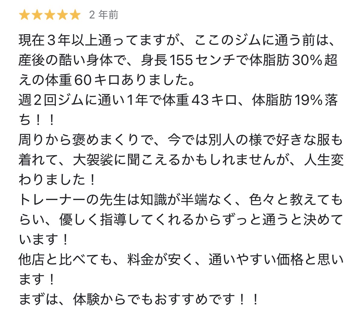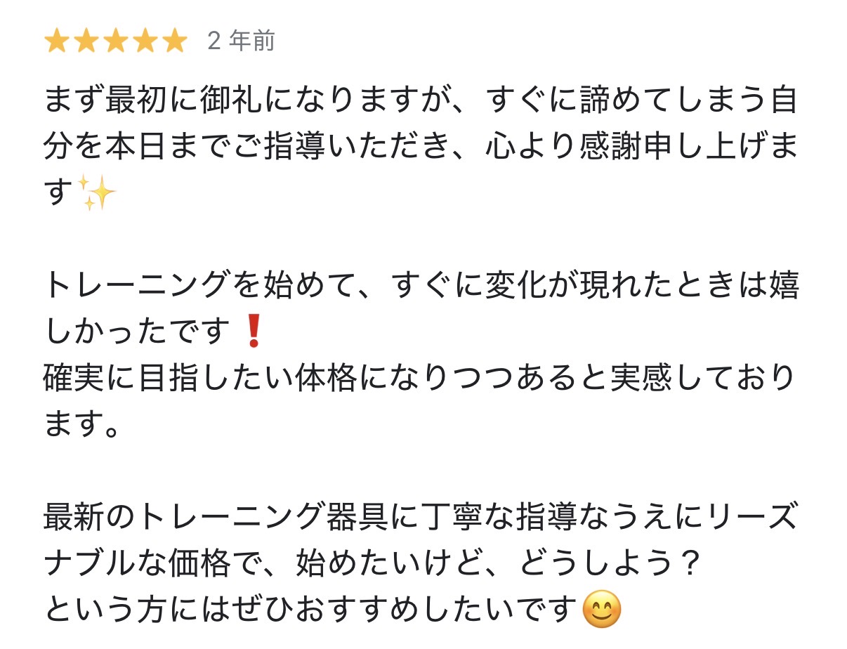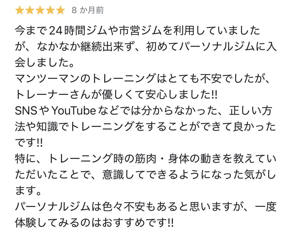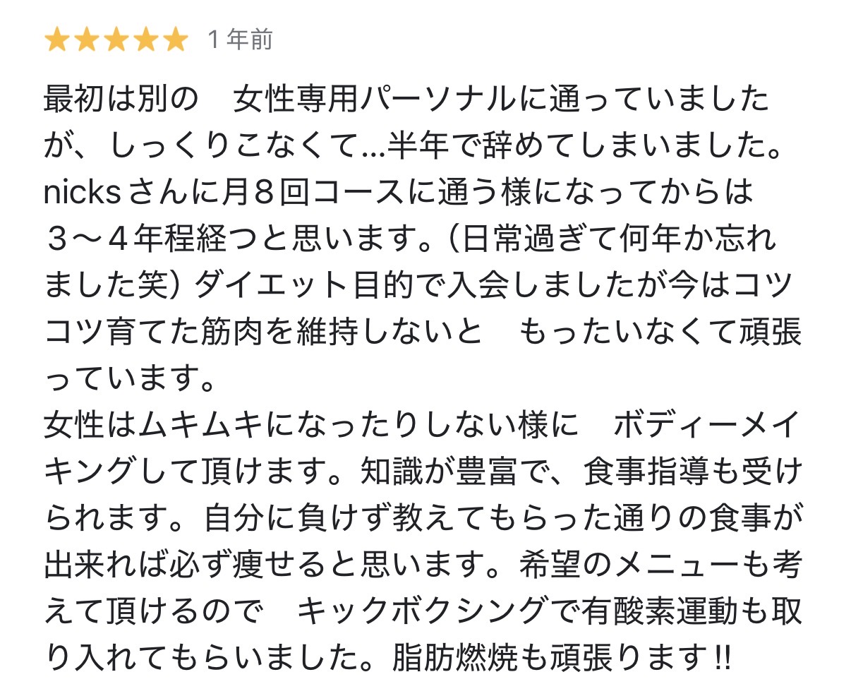 久留米市のパーソナルトレーニングジム ニックスフィットネスお客様の声