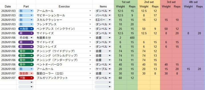 トレーニング記録シート